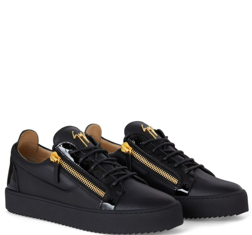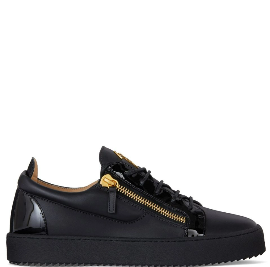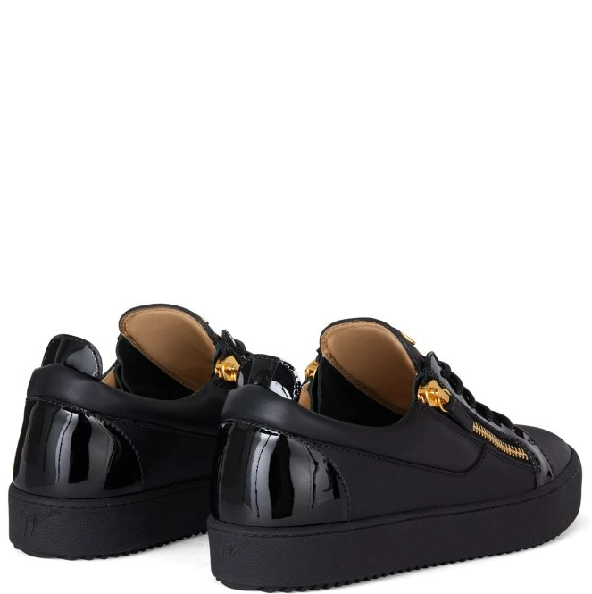 Sneaker low-top allacciata in pelle e pelle verniciata con doppia zip laterale e suola in gomma.