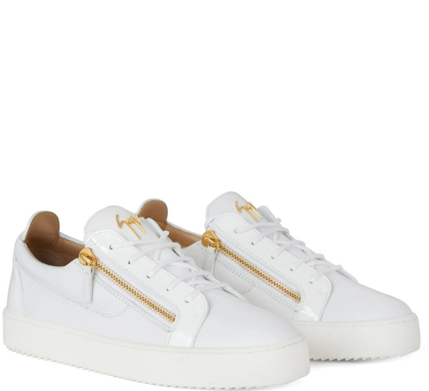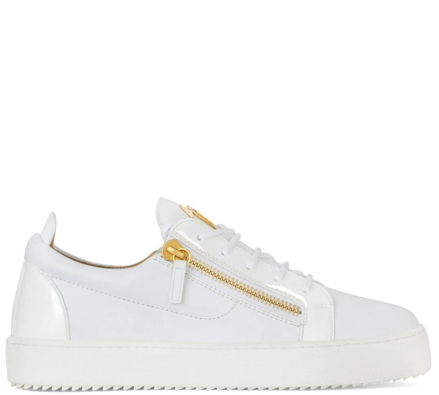 Sneaker low-top allacciata in pelle e pelle verniciata con doppia zip laterale e suola in gomma.