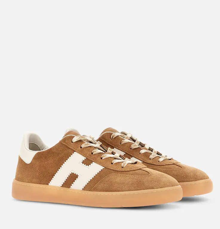 La tomaia è qui realizzata in pelle scamosciata, con un'H laterale dentellata in nappa
