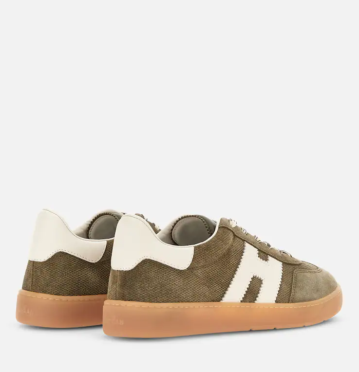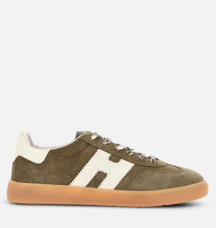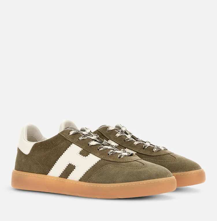 La tomaia è qui realizzata in pelle scamosciata, con un'H laterale dentellata in nappa