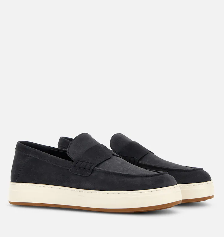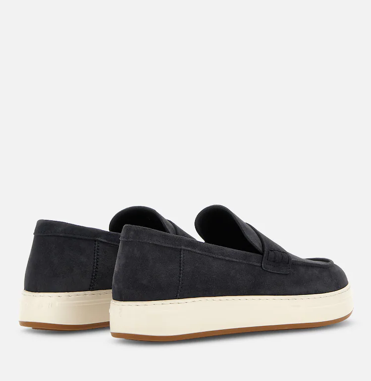 Questa versione mocassino, in pelle scamosciata, ha suola leggera e una mascherina con impunture artigianali. La soletta in memory foam assicura una calzata ammortizzata.