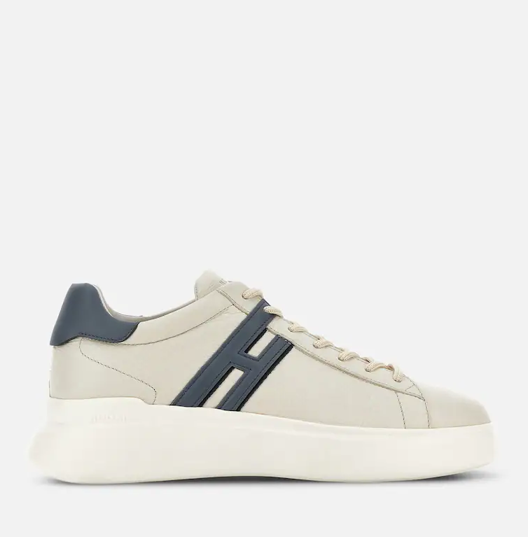 La tomaia in pelle dalla grana evidente, dalle linee morbide ed essenziali, è lo sfondo di un'H allungata che termina in un passa laccio. Un modello dalla vocazione urban casual, con una soletta in memory foam che assicura una calzata ammortizzata.