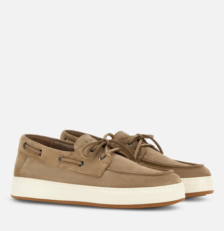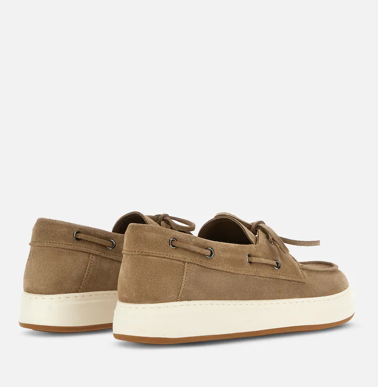 Questa versione da barca, in pelle scamosciata, presenta una tomaia leggera e il caratteristico laccetto intrecciato. La soletta in memory foam garantisce una calzata ammortizzata