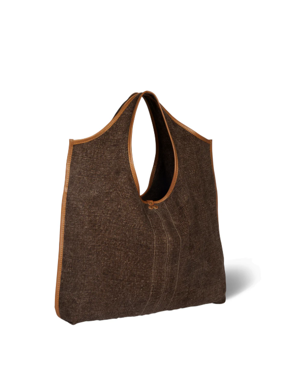 Borsa shopping morbida con manici rotondi, da portare a spalla come una tote bag. Fodera in cotone per le versioni in lamé, sfoderata per quelle in tessuto