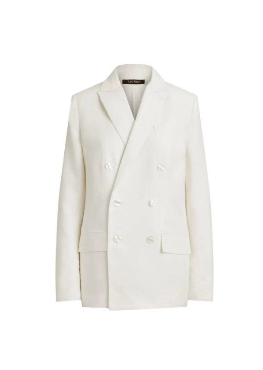 Giacca Lauren Ralph Lauren realizzata in misto lino con chiusura doppiopetto, revers a lancia, tasca sul petto e tasche con patte.