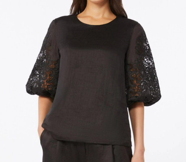 T-shirt con maniche a lanterna in macramé, impreziosite da ricamo Sangallo