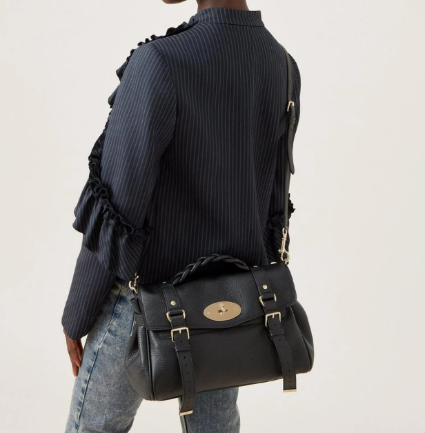 La borsa Alexa combina con eleganza elementi di due iconici modelli Mulberry: la borsa Bayswater e la valigetta Elkington.