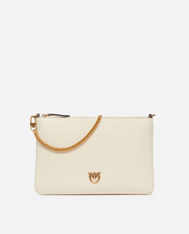 Borsa a tracolla flat in morbida pelle mano seta. Personalizzazione con placchetta Love Birds Diamond Cut