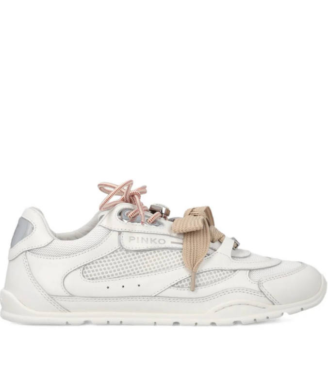 Sneaker realizzata in mesh con inserti in pelle, caratterizzata da doppi lacci di forma e colore diversi per un raffinato contrasto.