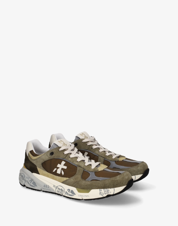 Risentono del mood nineties, combinano una silhouette moderna con materiali pregiati e dettagli vivaci. Fedeli al design Premiata, ne conservano tutti gli elementi chiave: il logo che decora i laterali, la scritta MASE che si evince sull’etichetta, trattamenti e dettagli a contrasto che ne risaltano la visibilità
