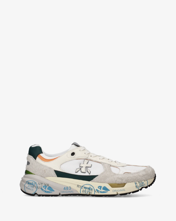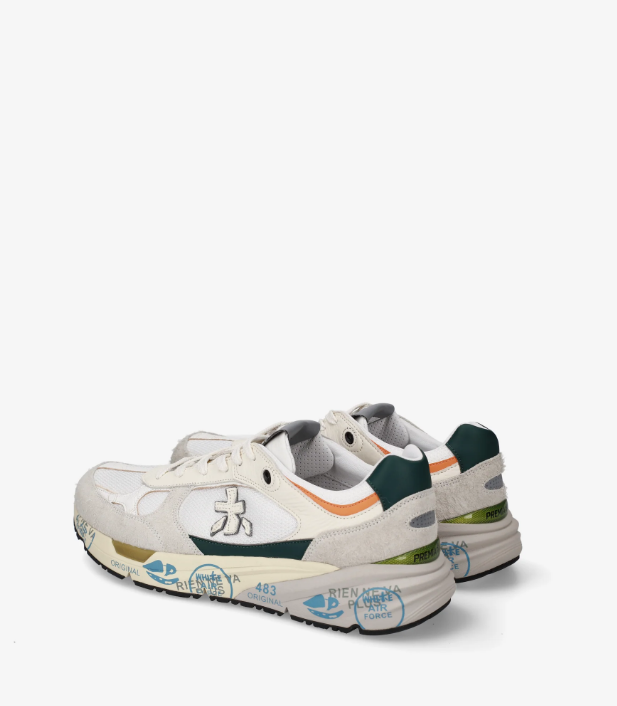 Risentono del mood nineties, combinano una silhouette moderna con materiali pregiati e dettagli vivaci. Fedeli al design Premiata, ne conservano tutti gli elementi chiave: il logo che decora i laterali, la scritta MASE che si evince sull’etichetta, trattamenti e dettagli a contrasto che ne risaltano la visibilità