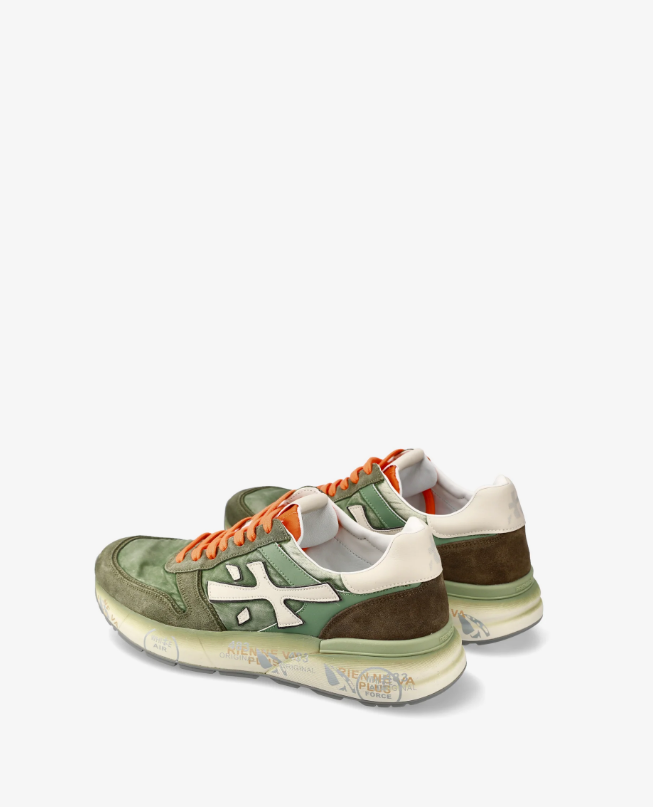 Un mix di materiali e pellami di qualità. La scarpa è realizzata nelle tonalità del verde per uno stile casual. L'iconica silhouette è arrichita dal logo Premiata.