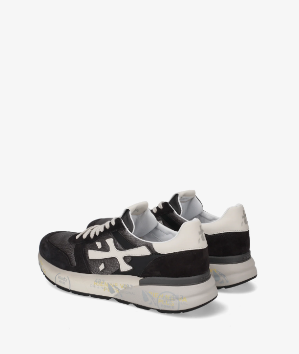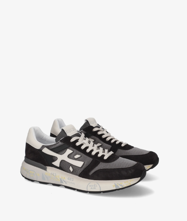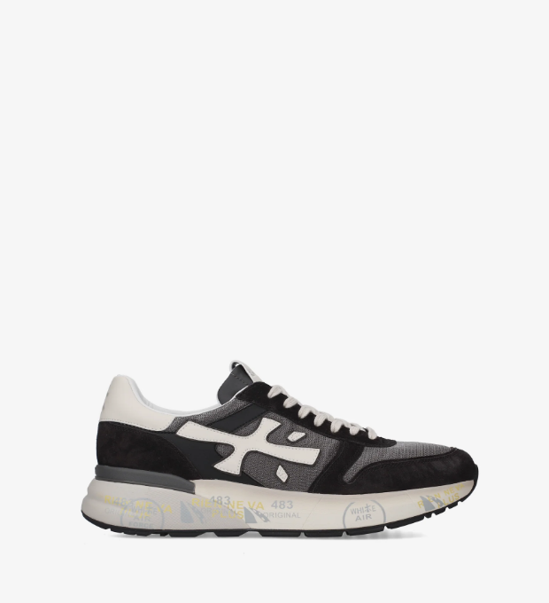 Un mix di materiali e pellami di qualità. La scarpa è realizzata in tonalità scure per uno stile casual. L'iconica silhouette è arrichita dal logo Premiata