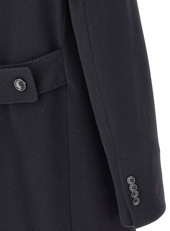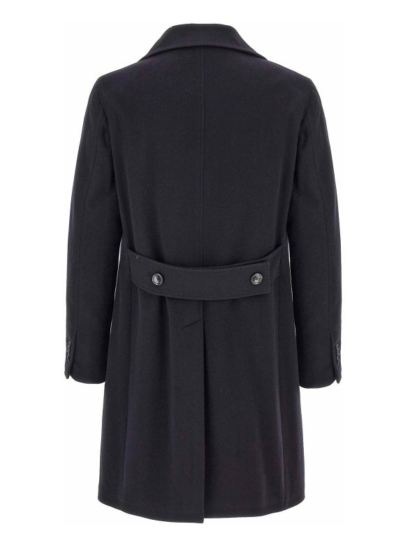 Cappotto Arden doppiopetto con tasche a bottone, maniche lunghe, spacco posteriore e martingala