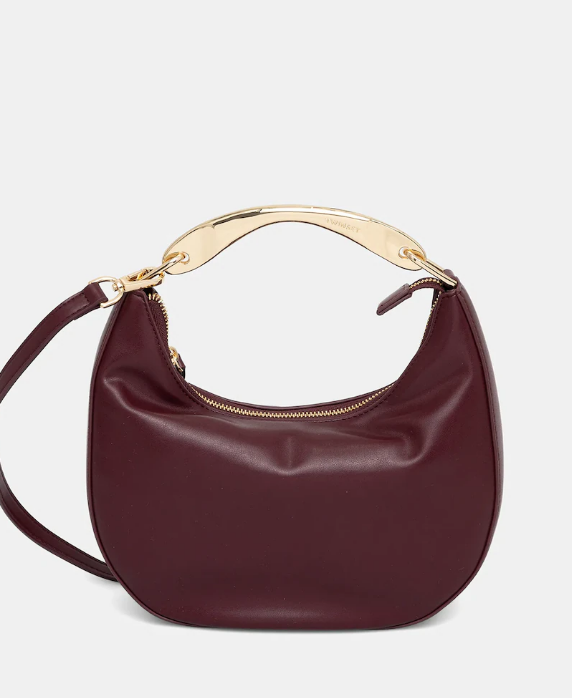 Borsa hobo ‘Croissant’ effetto pelle di vitello nappato naturale liscio. Ha manico a mano in metallo con logo inciso, realizzato con sagoma organica. Chiusura con zip e tracolla rimovibile e regolabile per indossare il modello cross-body.