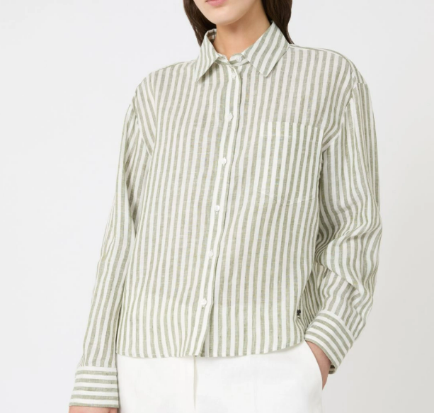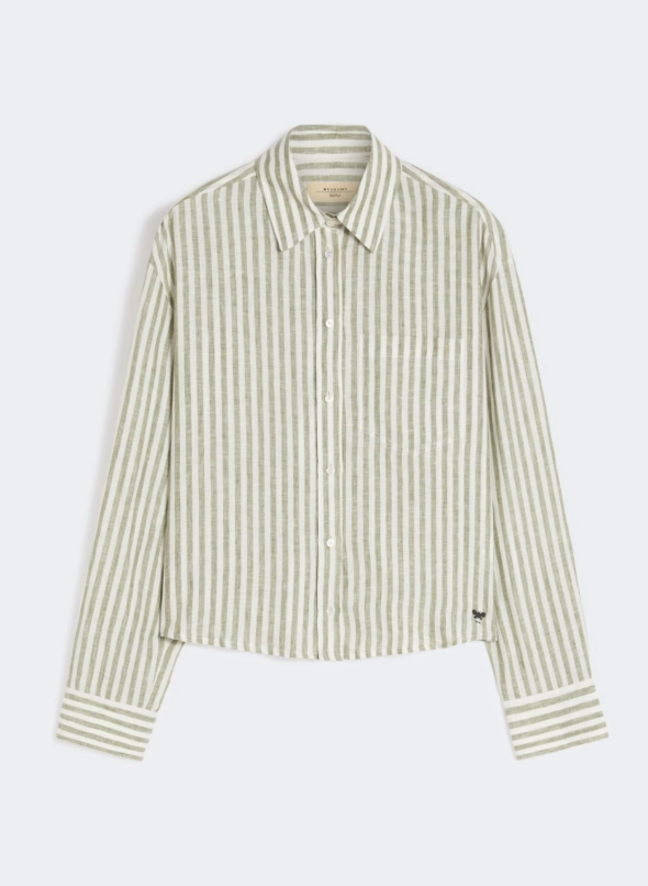Camicia cropped con stampa a righe e logo a farfalla ricamato al fondo sul davanti
