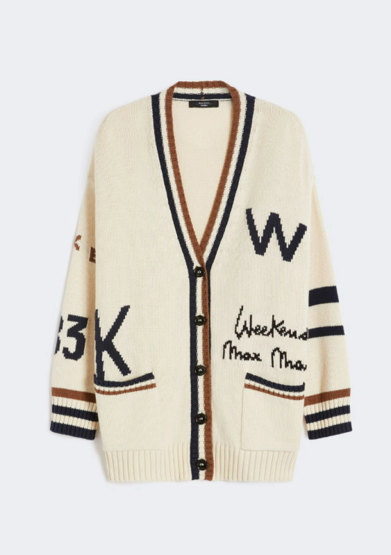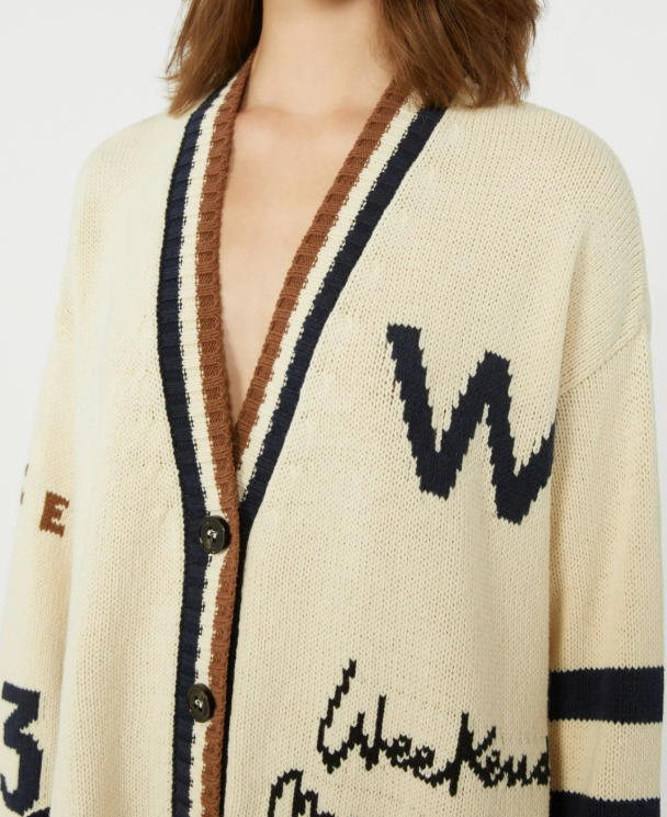 Cardigan oversize, personalizzato con dettagli intarsiati a contrasto sul davanti e sulle maniche