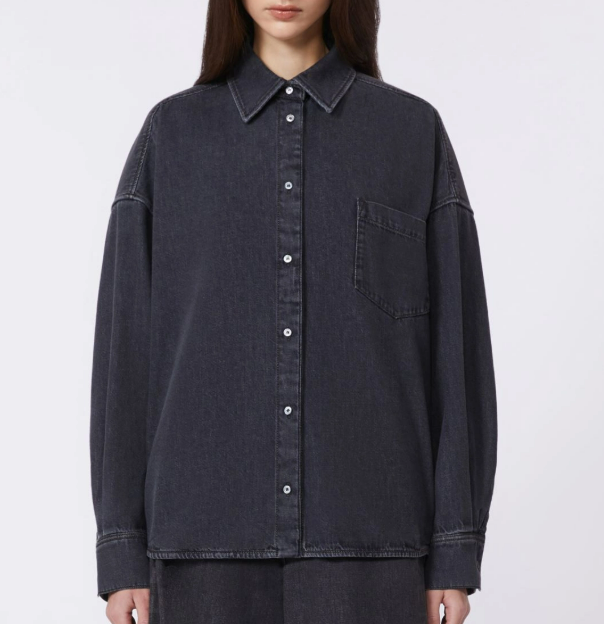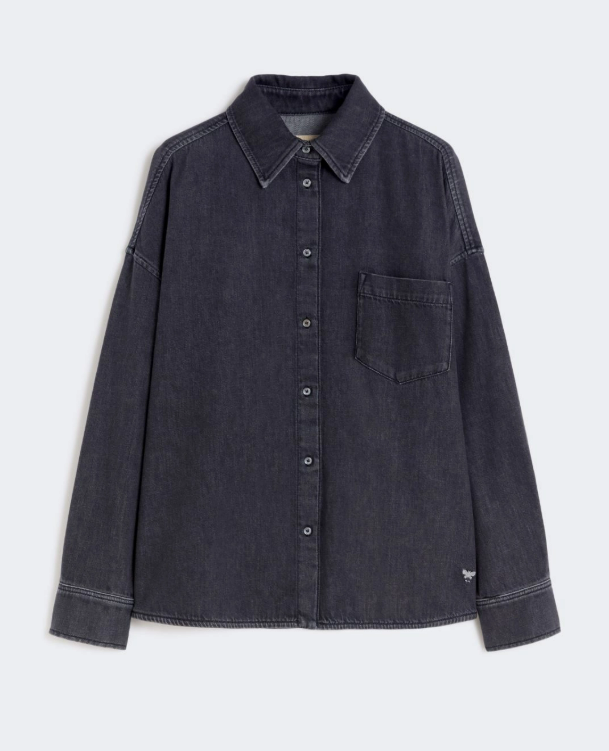 Camicia oversize con classiche impunture stile denim color tabacco e taschino sinistro applicato sul petto