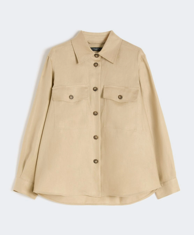 Giacca monopetto d’ispirazione workwear, caratterizzata da un ampio contropiego centrale sul retro che dona volume. Questo capo fa parte della capsule Mediterranean Ease