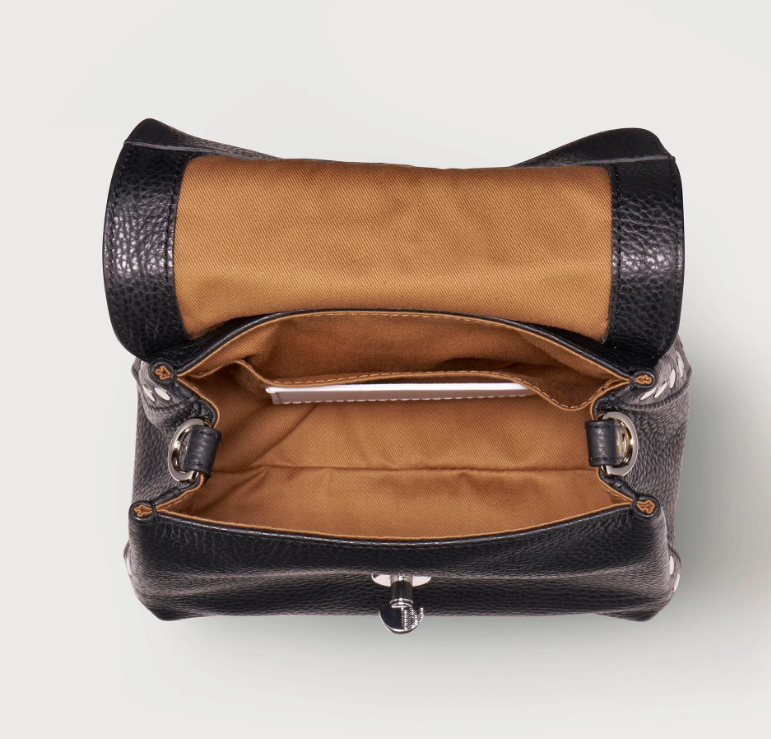 Non può mancare nel tuo guardaroba questa borsa Postina® in pelle martellata, con fodera e tasca interna e doppia chiusura. Realizzata in morbida pelle di vitello. Grazie alla tracolla in pelle regolabile, puoi scegliere se indossarla a mano, a spalla o a tracolla.