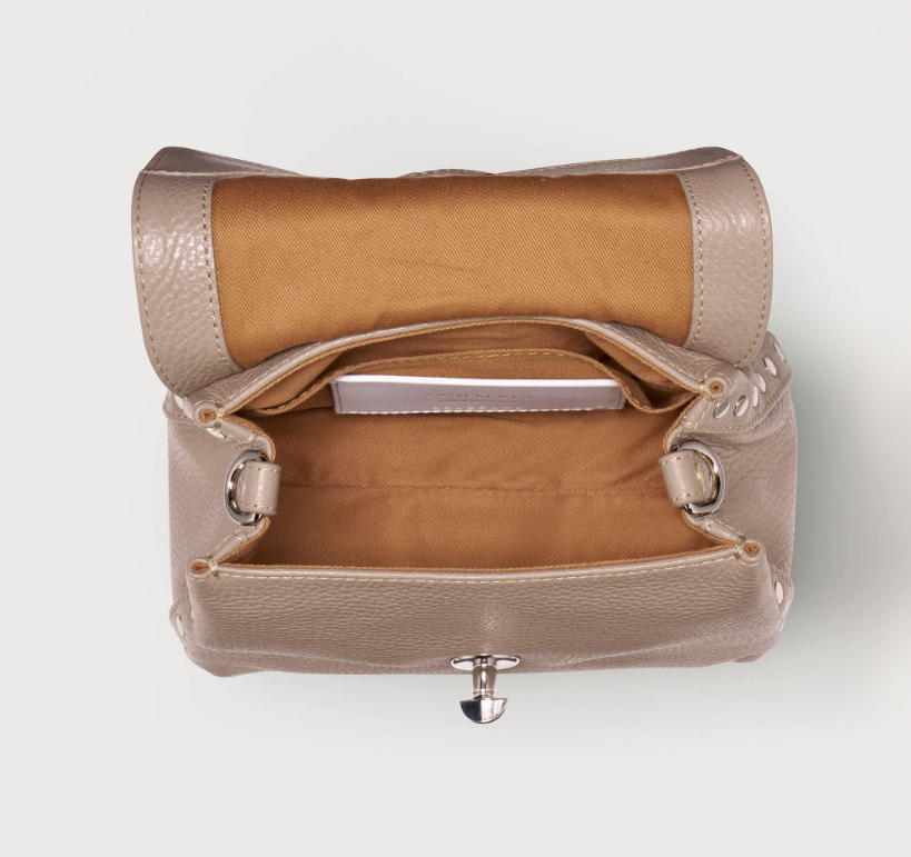 Non può mancare nel tuo guardaroba questa borsa Postina® in pelle martellata, con fodera e tasca interna e doppia chiusura. Realizzata in morbida pelle di vitello. Grazie alla tracolla in pelle regolabile, puoi scegliere se indossarla a mano, a spalla o a tracolla.